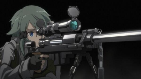 Di dalam GGO, dia dijuluki Hecate, sesuai dengan nama senjata yang digunakannya PGM Ultima Ratio Hecate II, sebuah senjata kaliber 50 yang langka. Sinon bermain GGO untuk mengatasi trauma masa kecilnya akan senjata api, dimana dia pernah menembak mati penjahat yang merampok sebuah kantor pos saat masih kecil untuk melindungi ibunya.